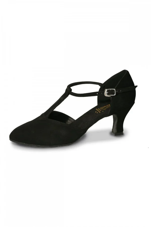 Felicity Ballroom Dance Shoes from Roch Valley. An elegant Ladies Ballroom Shoe, perfect for social dancing or a special dance occasion, the Black Nubuck Felicity features a T-Bar strap, 2.5 inch flared heel, closed toe. These beautiful ballroom shoes also have a handy quick fasten buckle and Super-flexi Suede soles, to ensure you are provided with the utmost comfort and support.